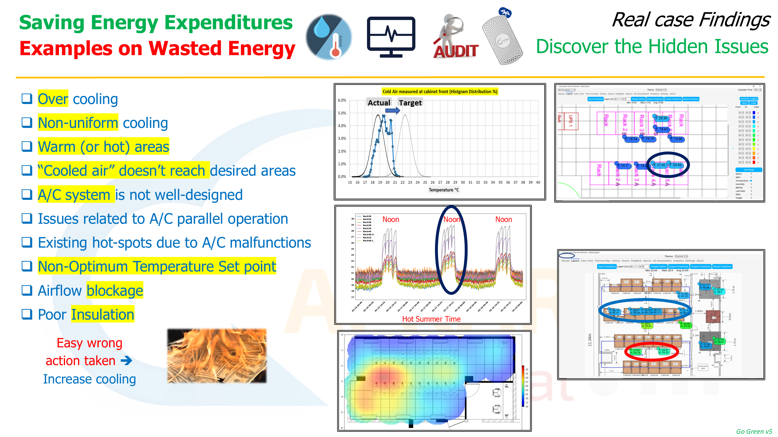 نمط درجة الحرارة هذا ظهر خلال الصيف الحار وكشف عن إنخفاض كفاءة التبريد لوحدات تكييف الهواء في غرفة مركز بيانات أحد العملاء.