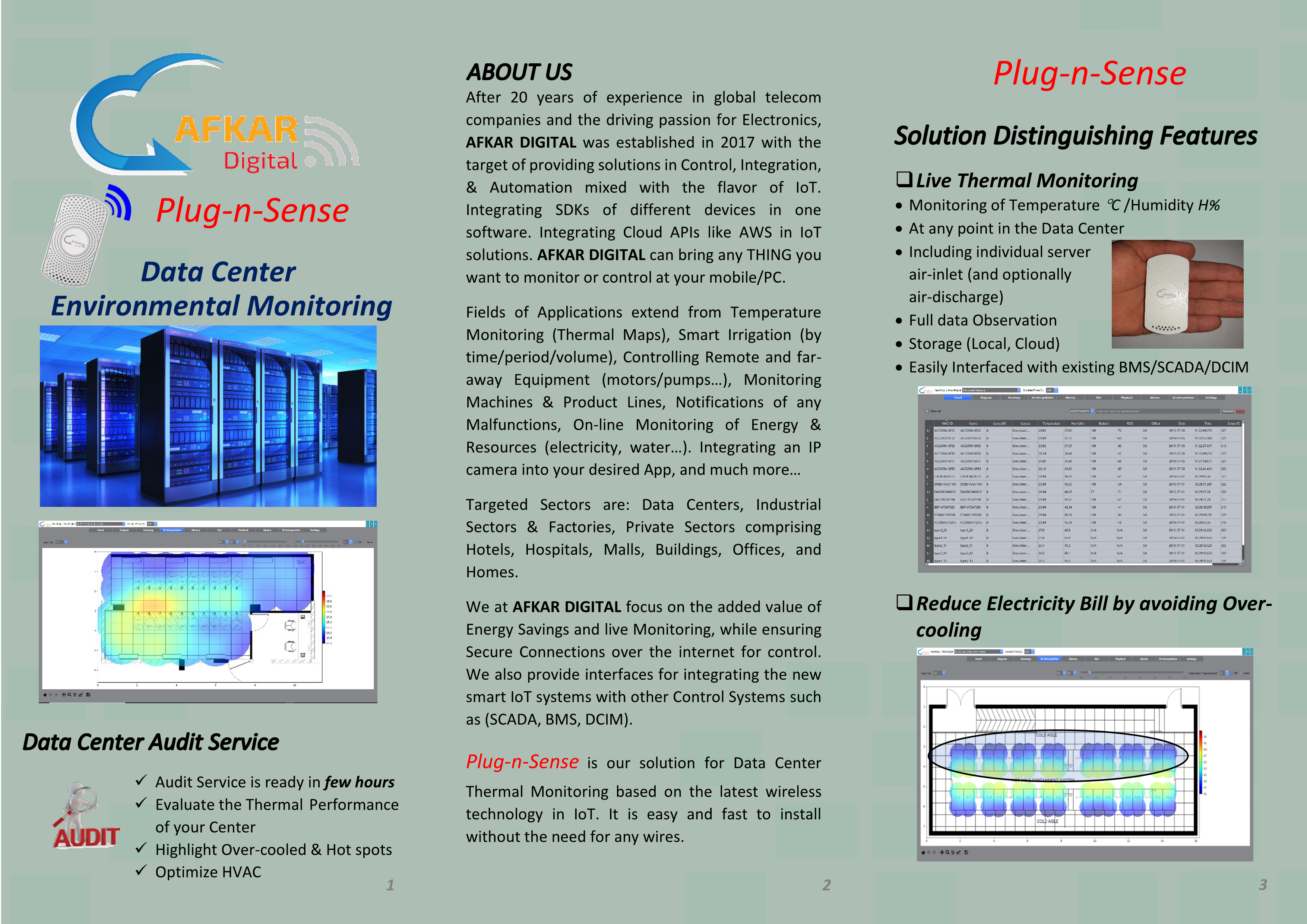 Optimize HVAC System Viewing 2D/3D Thermal Maps Using wireless BLE technology (Temperature, Humidity, Leakage, Door Open) Friendly Installtion: No Drilling - No Dust - No Wires