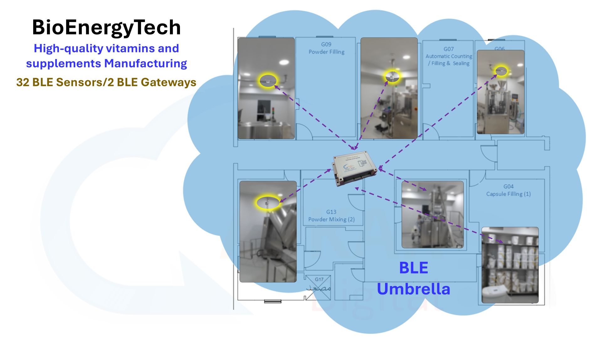 - The Sensors, which in this case are BLE Temperature and Humidity Sensors (T/H), are located without the need for wires, no extra installation work like drilling, and avoiding dust in sensitive areas like medicine factories/cold rooms.